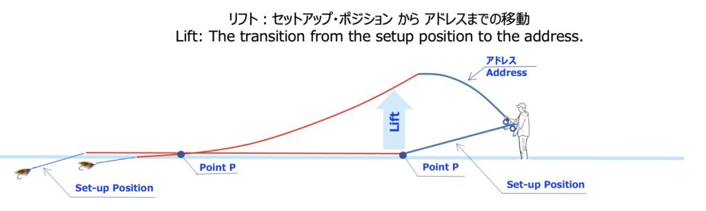 [定義] 「アドレス」とは、リフトが完了し、バックキャストに入る直前、次の動作(バックキャスト・ストローク)に入るにあたっての「構え」の状態を指す。
