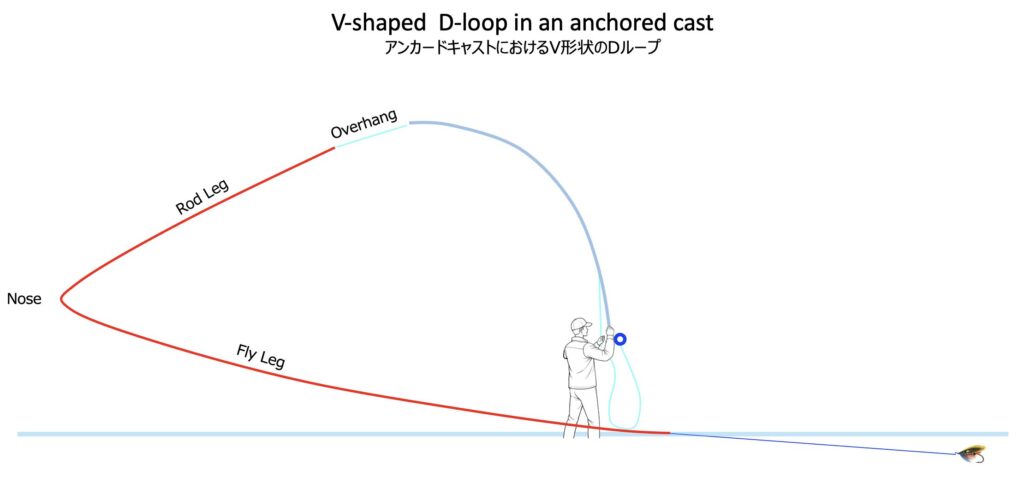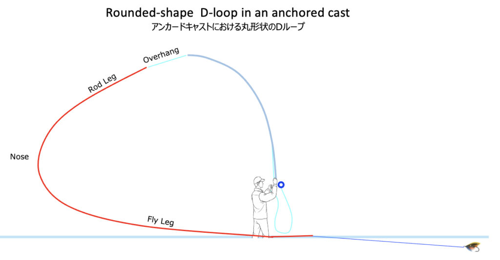 [Definition] It refers to the state of the line and leader hanging from the rod tip after finishing swing or drift the fly, and also the state of the line in the setup position for the next cast.