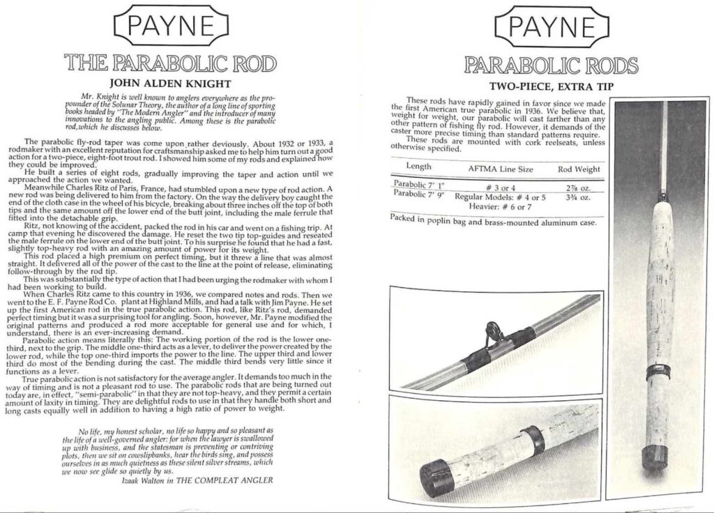 以上は、エヴェレット・ギャリソンが”パラボリック”命名の起源であると言う逸話ですが、以来リッツは「パラボリックと言う呼び名は、ロッド全体が滑らかに曲がることを象徴する比喩としての言葉です」 と妙に説明がましく、恐らくその中にギャリソンへのリスペクトの含みを持ってパラボリックを語る姿勢が見受けられます。